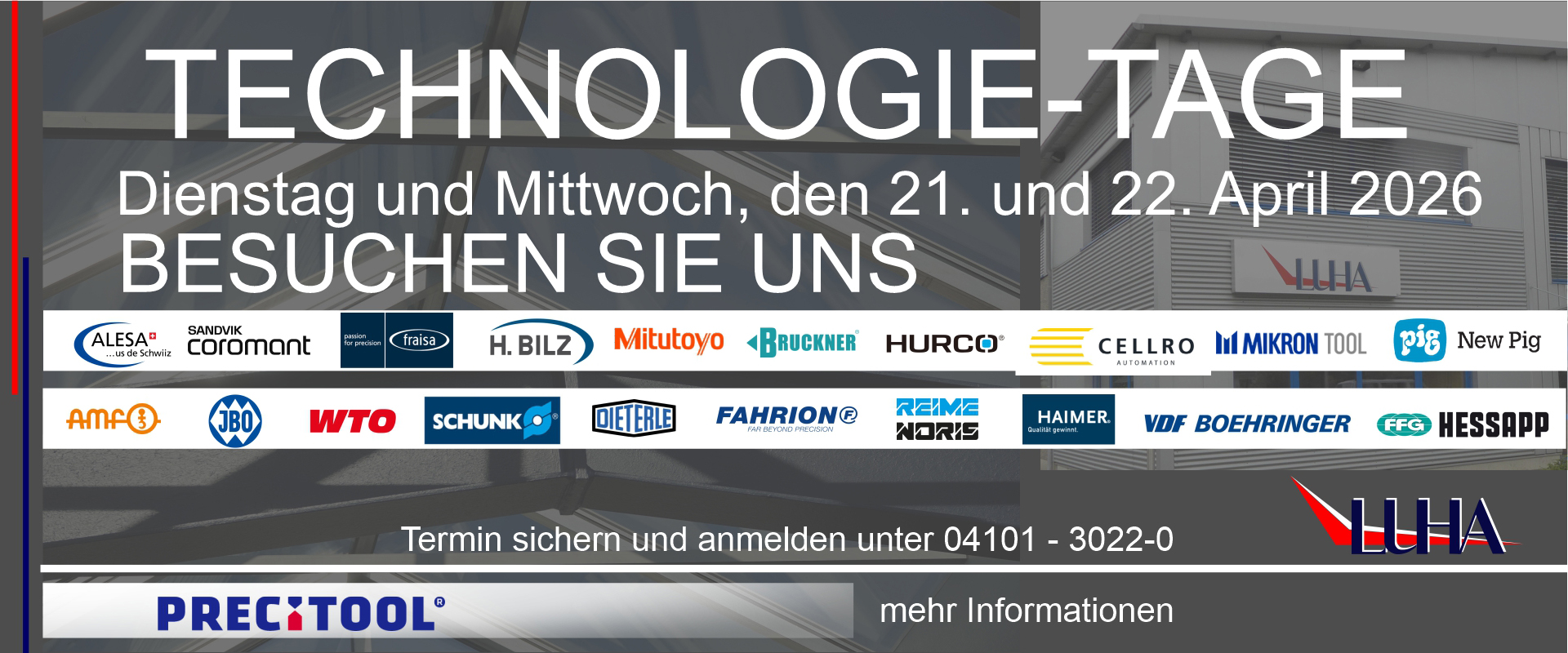 LUHA bietet Ihnen technologisches Know-How über alle Themen der Zerspanung und Produktivitätsrechnung. Ganzjährig finden in unseren Räumlichkeiten und bei unseren Vertagspartnern/ Hersteller-Werken Kurse und Seminare in angenehmer Atmosphäre (10-25 Teilnehmer) statt.